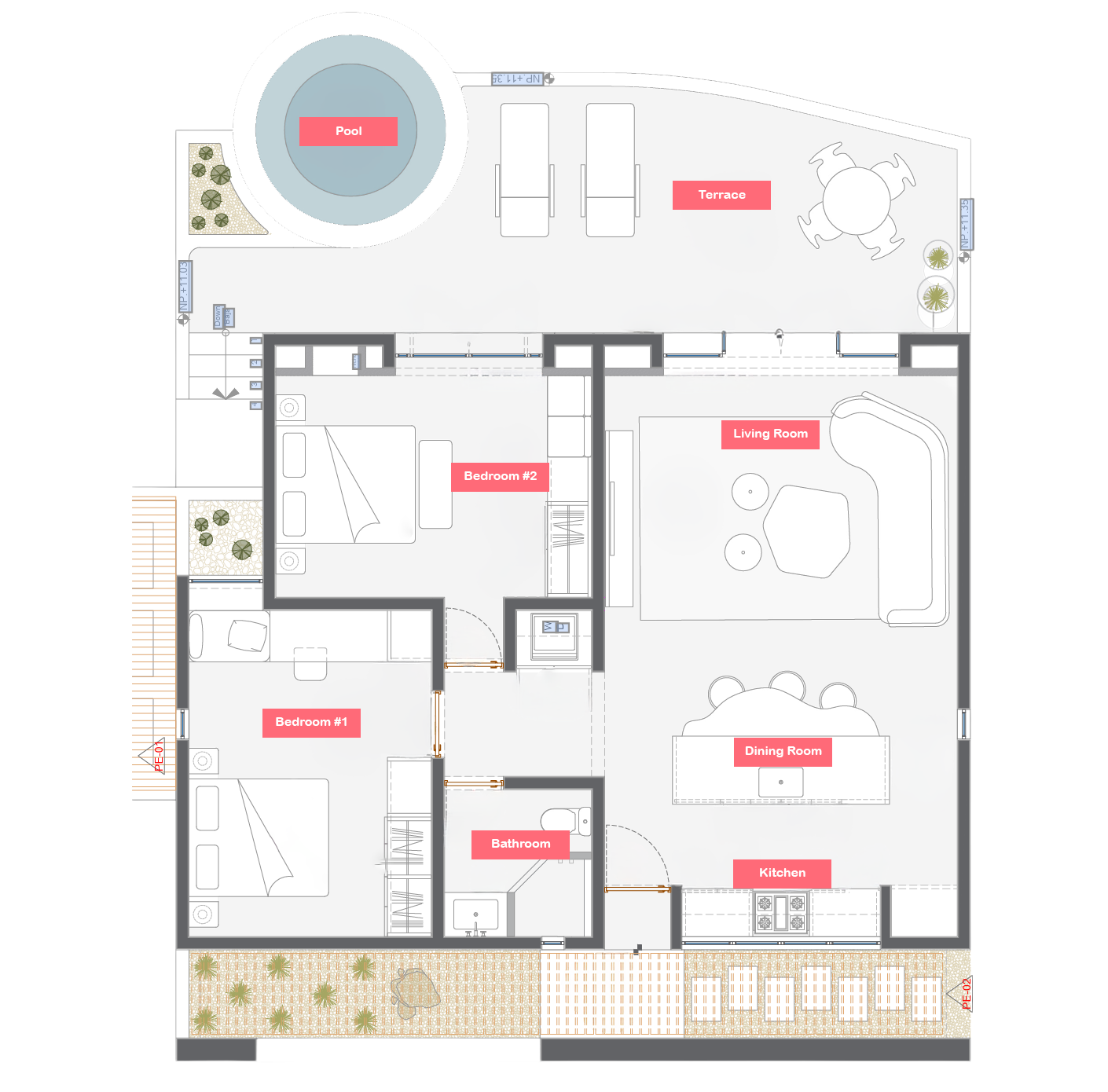 Ola Baja has two bedroom both with ocean views. They both offer queen size beds.