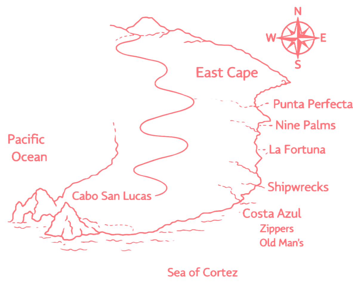 The East Cape of Baja, just north of Cabo San Lucas along the Sea of Cortez, offers a very different surf experience than the Pacific side of the peninsula. Here, the coastline faces east and picks up long-period south and southeast swells, especially from late spring through early fall. The result is clean, warm-water surf with far fewer crowds than you will find on the Pacific coast or in mainland Mexico.